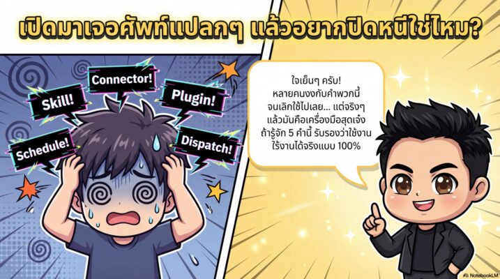 แต่พอเปิดมาใช้จริง ก็จะเจอคำแปลกๆ เต็มไปหมด ทั้ง Skill, Connector, Plugin, Schedule, Dispatch