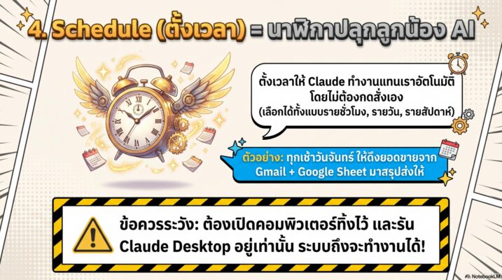 Schedule คือการตั้งเวลาให้ Claude ทำงานให้เราอัตโนมัติ ไม่ต้องคอยสั่งทุกครั้ง