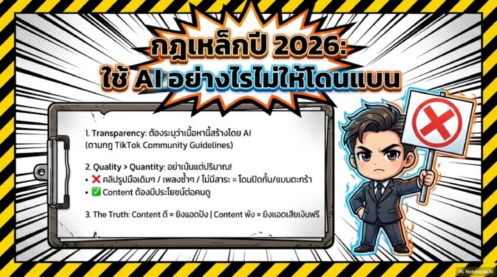 การใช้ AI ทำ Content ในยุคปี 2026 นี้ คุณต้องทำภายใต้กฎชุมชนของ TikTok และแพลตฟอร์มต่างๆ ด้วยนะครับ