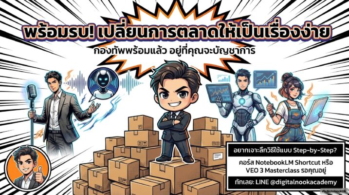 ถ้าใครอยากลงลึกการใช้งาน AI แต่ละตัวแบบ Step-by-Step ไม่ว่าจะเป็นคอร์ส NotebookLM Shortcut หรือ VEO 3 Masterclass เจาะลึกการทำคลิป AI แบบมือโปร