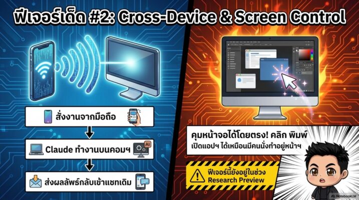 เมื่อ Claude ไม่มี Connector หรือเครื่องมือสำหรับงานที่ต้องการ มันสามารถควบคุมหน้าจอได้โดยตรง คลิก พิมพ์ และเปิดแอพต่างๆ เหมือนคนนั่งทำงานอยู่หน้าเครื่อง (ฟีเจอร์นี้ยังอยู่ใน Research Preview นะครับ)