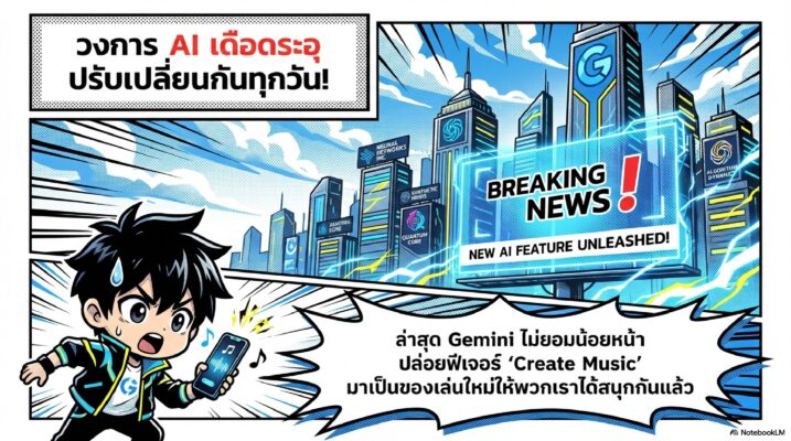 วงการ AI นี่ปรับเปลี่ยนกันทุกวันจนตามแทบไม่ทันเลยนะครับ! ล่าสุดพี่นุกไปเจอของดีมา Gemini เค้าออกฟีเจอร์ใหม่ ให้เรา “สร้างเพลง” ได้แล้วแบบง่ายๆ เฮ้ย! มันน่าสนใจมากนะครับ เพราะ Gemini มักจะมีของเล่นใหม่ๆ มาเซอร์ไพรส์เราเสมอ เหมือนตอนที่เปิดตัว Canvas ทำสไลด์ หรือ VEO ที่ทำวิดีโอสวยๆ นั่นแหละครับ