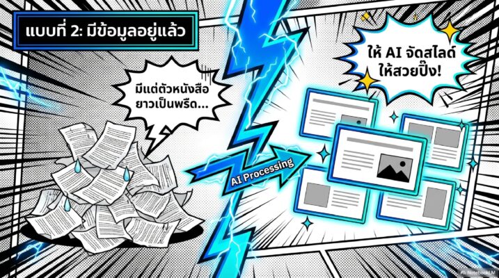 แบบที่ 2: มีข้อมูลแล้ว ให้ AI จัดสไลด์ให้