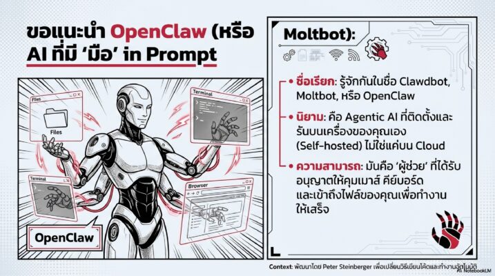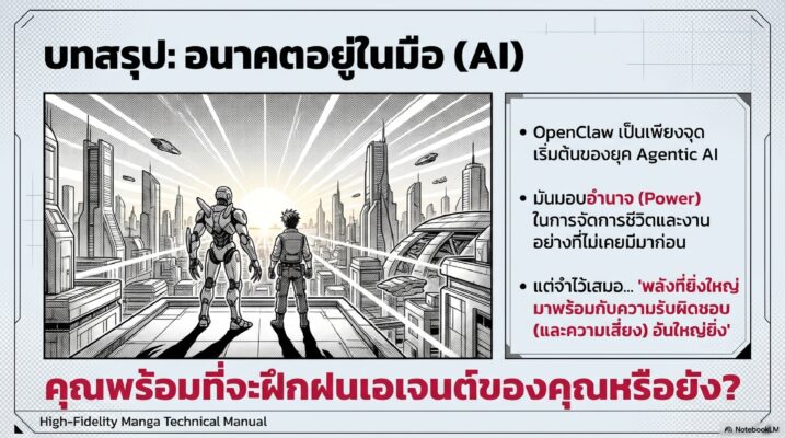 OpenClaw คือก้าวแรกของยุคใหม่ที่เรียกว่า Agentic AI (AI ที่เป็นตัวแทนทำงานได้จริง) มันมีประโยชน์มหาศาลในการช่วยทำงานแทนมนุษย์ แต่ก็มาพร้อมกับความรับผิดชอบและความเสี่ยงที่สูงมาก
