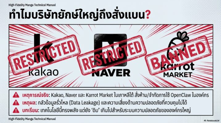 ด้วยความเสี่ยงที่กล่าวมา ทำให้บริษัทใหญ่ๆ ในเกาหลีใต้ เช่น Naver, Kakao หรือ Samsung สั่ง “ห้าม” พนักงานใช้ OpenClaw ในที่ทำงานเด็ดขาด